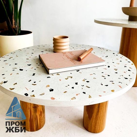 «ПромЖБИ» предлагает еще один оригинальный вариант – столики терраццо, выполненные на современном оборудовании, но по известной с давних пор технологии. Эстетичные и долговечные столики станут украшением интерьера. Мы гарантируем высокое качество, в подтверждение чего выдаем на руки технический паспорт, реализуем продукцию по доступным ценам.